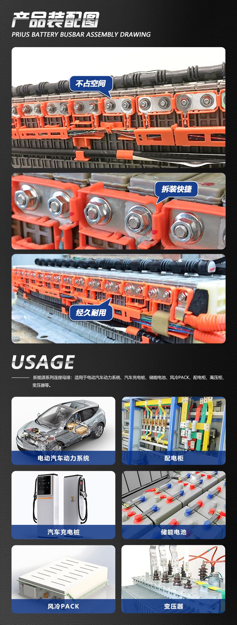 普銳斯豐田電池母排是混合動力電動汽車(HEV)和純電動汽車(EV)中的關鍵組件,用于連接電池模塊并傳輸電流。作為平面或帶狀銅連接件,這些銅母排能高效地傳遞電流,保持電池模塊之間的電壓和電流平衡,防止過充或過放,從而延長電池壽命。其優異的導電性、機械強度和耐熱性對于確保車輛的最佳性能至關重要。
